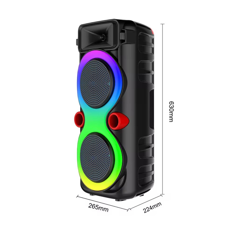 این اسپیکر با دو بلندگوی 8 اینچی و توان خروجی بالا، صدایی قدرتمند و باکیفیت ارائه میدهد. نورپردازی جذاب RGB و قابلیتهای متنوع اتصال، آن را به گزینهای ایدهآل برای استفاده در مهمانیها و فضاهای باز تبدیل کرده است