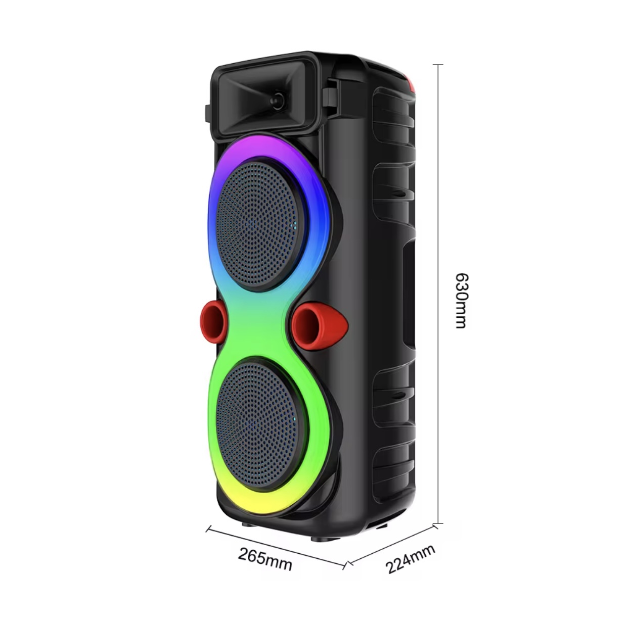 این اسپیکر با دو بلندگوی 8 اینچی و توان خروجی بالا، صدایی قدرتمند و باکیفیت ارائه میدهد. نورپردازی جذاب RGB و قابلیتهای متنوع اتصال، آن را به گزینهای ایدهآل برای استفاده در مهمانیها و فضاهای باز تبدیل کرده است