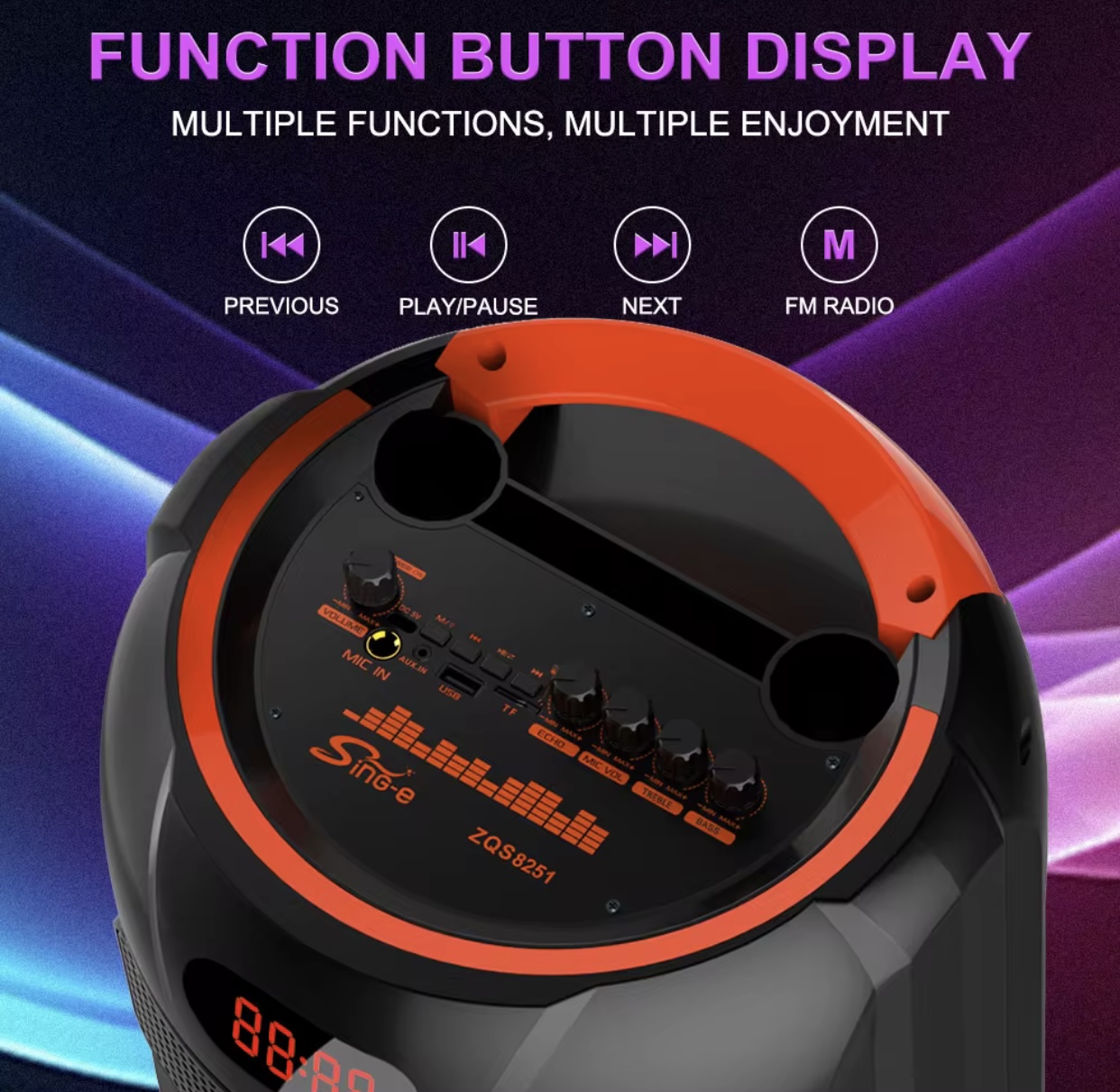 • ویژگیهای اضافی: مجهز به نورپردازی LED، رادیو FM، پشتیبانی از کارت حافظه TF و درگاه USB