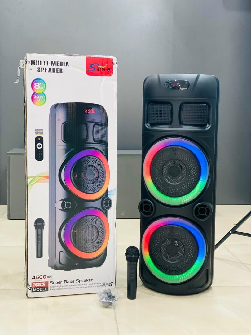 این اسپیکر با طراحی چمدانی و دسته حمل، مناسب برای مهمانیها و استفاده در فضاهای باز است.